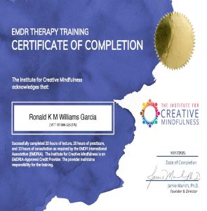I am Ronald K M Williams Garcia, MDiv, JD, DMin(c), LMFT, CCC, CCTP